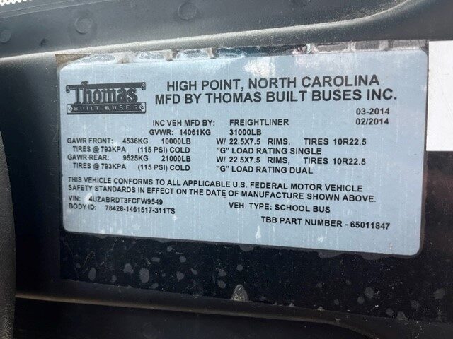 2015 Thomas Freightliner 71 Passenger Air Brakes